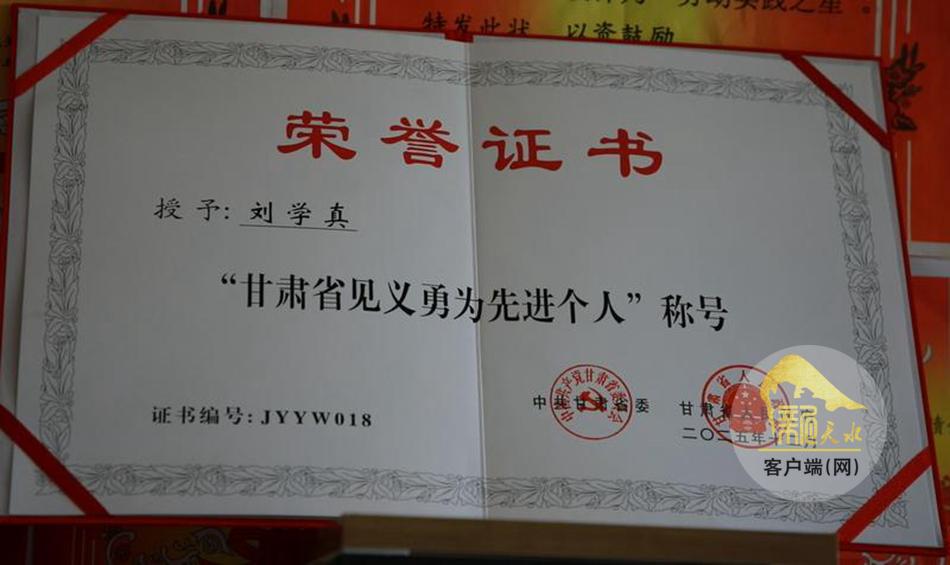 新天水讯【天水融媒特约通讯员蒲爱民 王正平】在前不久召开的甘肃省第十二次见义勇为英雄和先进个人表彰大会上,武山县马力学区教师刘学真荣获“甘肃省见义勇为先进个人”称号。扎根乡村教育近20年的他,在危急时刻挺身而出救助他人,用实际行动诠释了新时代教育工作者的责任与担当。