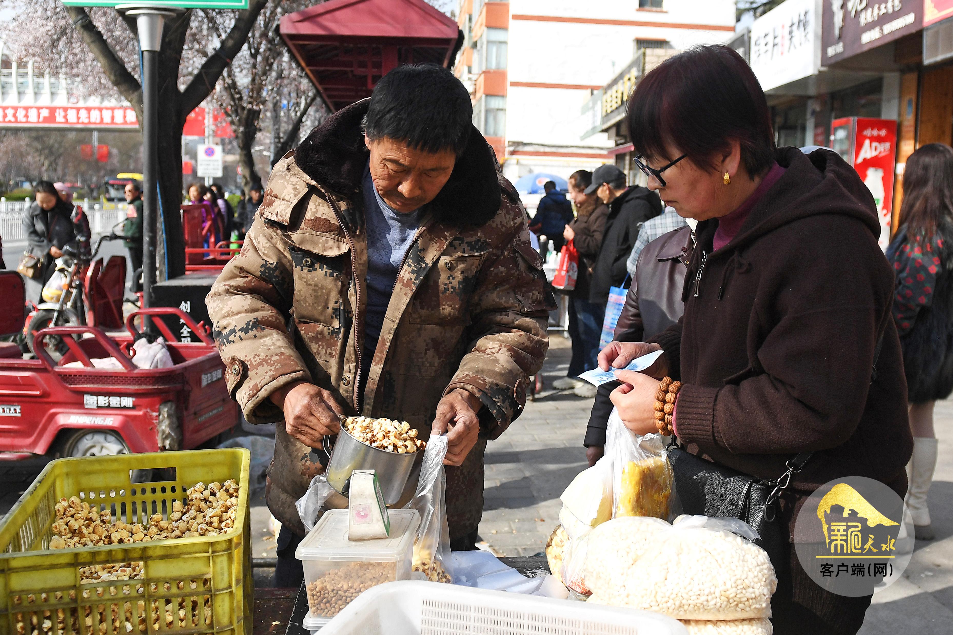 3月20日,农历二月初二。天水市民舞龙健身、修剪头发,选购炒豆和爆米花。在天水,二月二这一天有理发“剃龙头”、吃炒豆和爆米花的习俗,这些活动寓意着幸福平安的生活。(天水融媒记者 孙镇 摄)