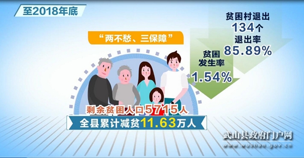 • 全县贫困人口从2013年建档立卡的12.2万人降至2018年底的5715人,累计减贫11.63万人,贫困发生率从28.67%降至1.54%,156个贫困村退出134个,退出率85.89%,贫困县脱贫摘帽各项指标全部达到标准。[查看详情]