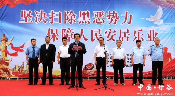 • 9月5日,甘谷县在大什字广场举行主题为“坚决扫除黑恶势力,保障人民安居乐业”的扫黑除恶专项斗争宣传活动暨新闻发布会。[查看详情]