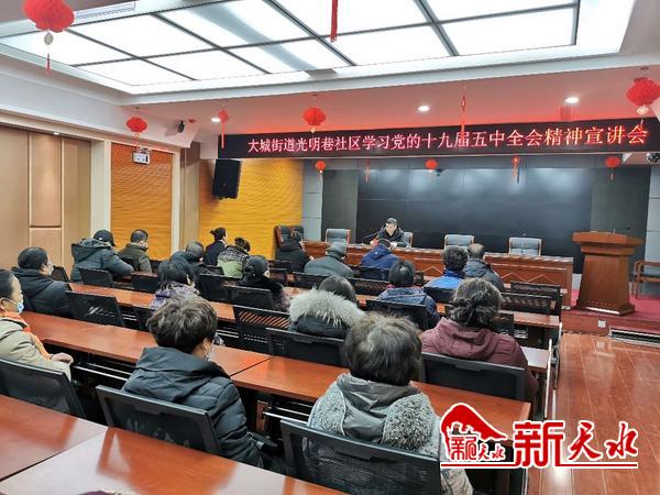 为帮助辖区广大党员群众更好地学习党的十九届五中全会精神,让党的十九届五中全会精神“飞入寻常百姓家”,近日,秦州区大城街道光明巷社区开展了一场接地气、有温度、具活力的十九届五中全会精神学习宣讲活动。