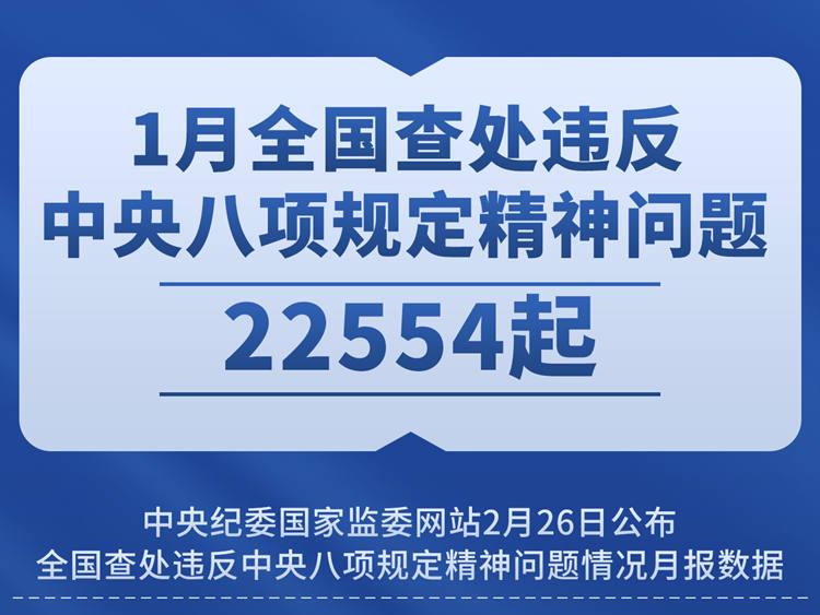 1月全国查处违反中央八项规定精神问题22554起