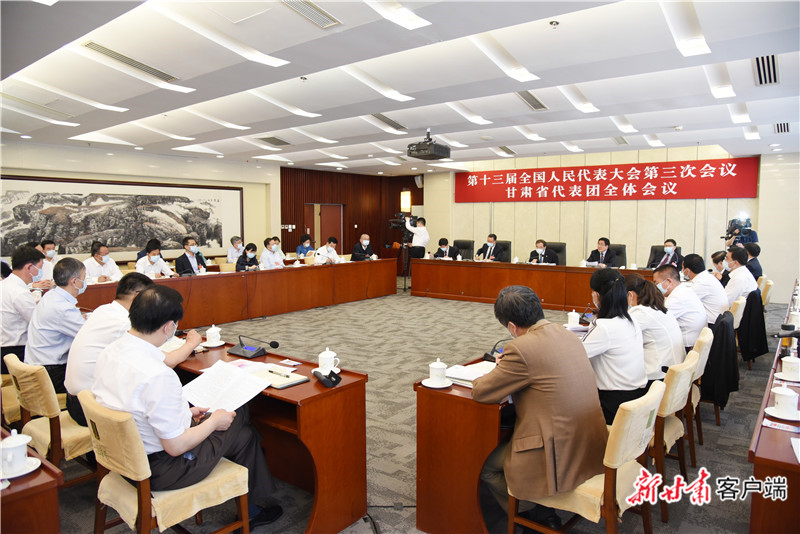 出席十三届全国人大三次会议的甘肃代表团今天下午在驻地举行全体会议,审议李克强总理所作的政府工作报告。