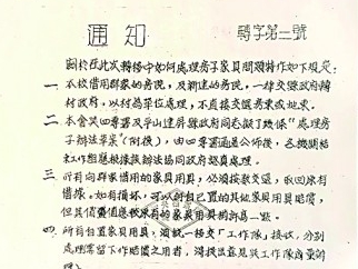 在西柏坡纪念馆,收藏着一则体现共产党人为民情怀的通知,它就是《关于转移中处理房子家具规定的通知(转字第二号)》。