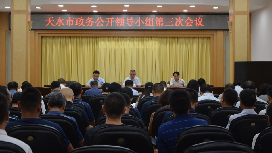 7月29日,天水市政务公开领导小组第三次会议召开,传达了全省政务公开领导小组第三次会议精神,总结通报了去年以来全市政务公开工作,安排部署了下一阶段政务公开重点工作。