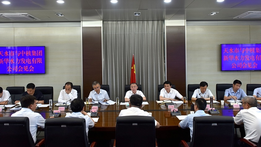 7月12日,天水市委书记王锐会见中核集团新华水力发电有限公司党委书记、董事长、总经理张焰一行,双方就新能源开发合作进行了洽谈。