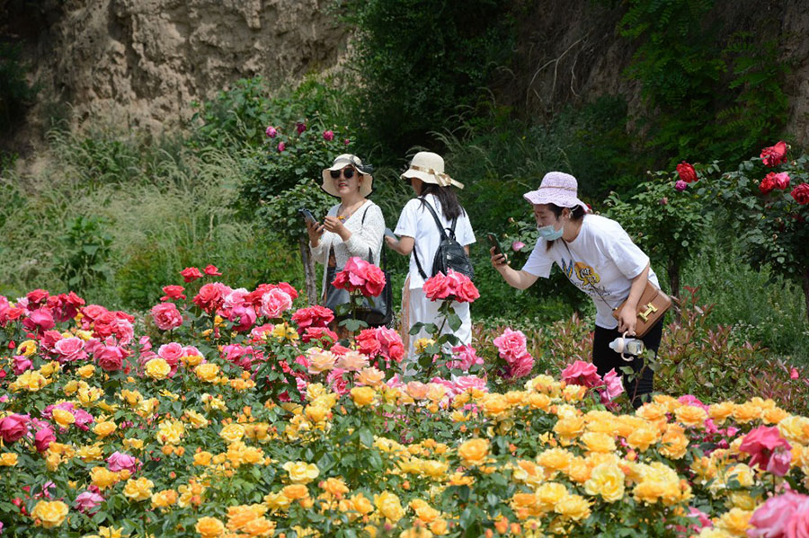 入夏以来,在秦州区北山玉泉镇玉泉村附近的月季生态园里,各色月季花竞相开放,争奇斗艳,吸引了众多市民前来游玩观赏。