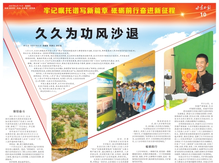 入秋的古浪县八步沙林场,场区道路正在修整,过去的砂石路将被柏油路代替;运水车源源不断驶向沙漠深处,用甘霖滋润新栽的幼苗。巍峨的祁连山北麓,当年风沙肆虐的荒芜之地,如今绿意盎然、生机勃勃。