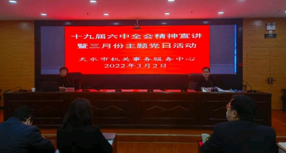 3月2日,天水市机关事务服务中心组织开展学习贯彻党的十九届六中全会精神专题宣讲报告会。