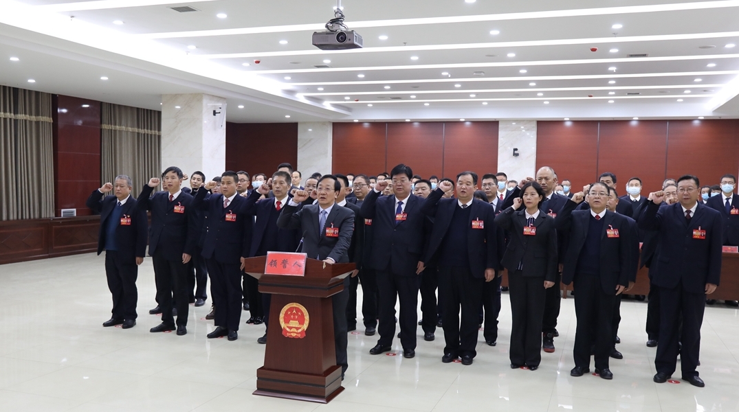 11月29日下午,张家川回族自治县第十七届人民代表大会第一次会议闭幕后,举行了新当选人员向宪法宣誓仪式。