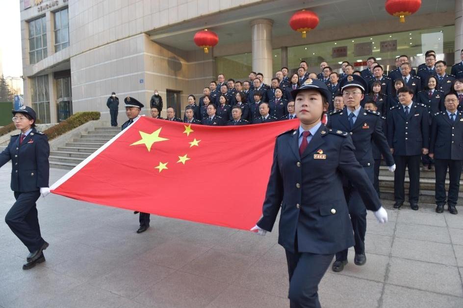 1月28日上午正月初七,春节过后上班第一天,天水市税务系统与全省税务系统一道,同步举行庄严的升国旗仪式,市局机关80多名干部在市局机关参加升国旗活动,各县(区)局在当地开展升国旗活动。
