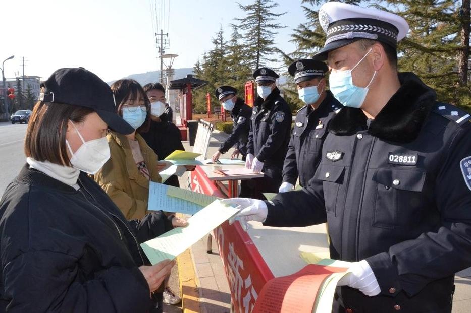 1月9日, 张家川回族自治县公安局交警大队借助“110宣传日”的良好契机,紧密结合“平安春运 交警同行”主题宣传,在人、车流量较大的万昌路开展了集中宣传活动。