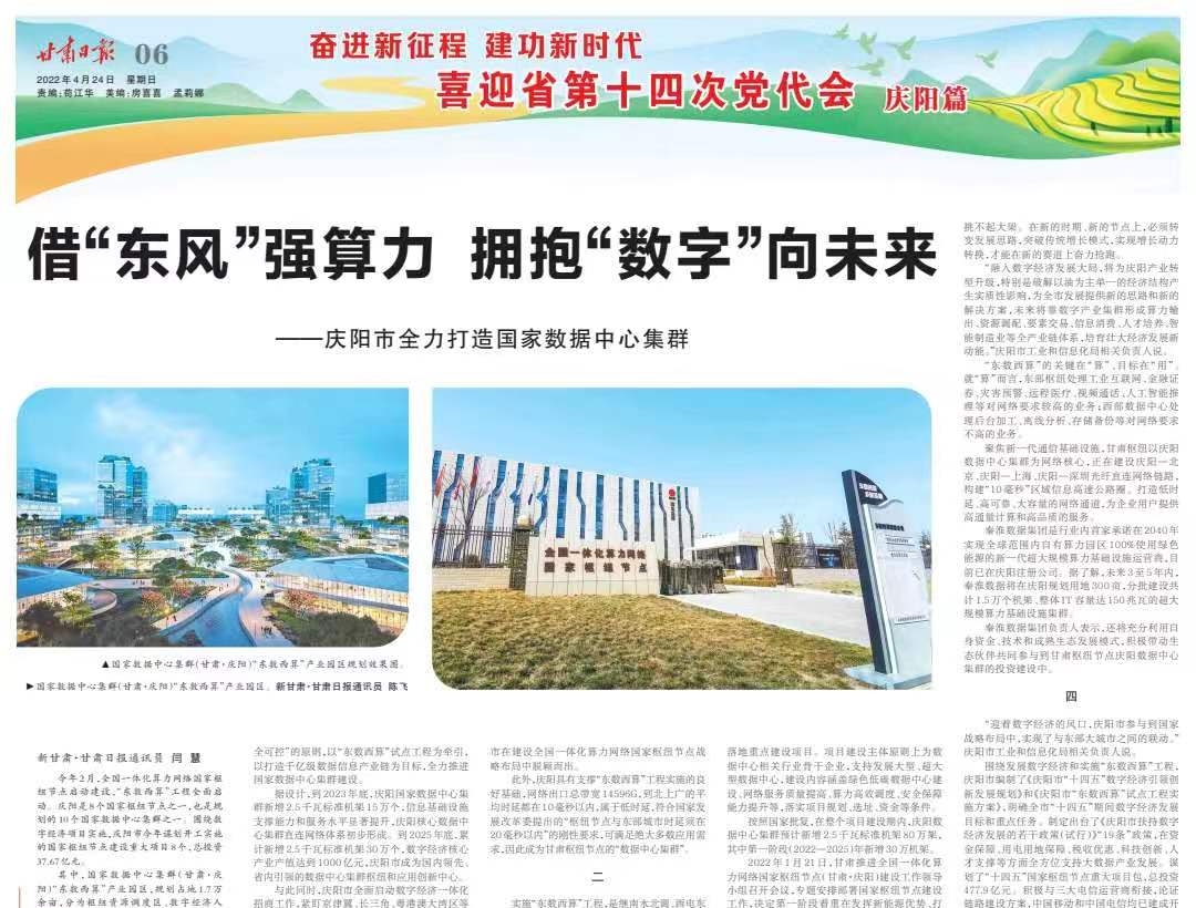 【奋进新征程 建功新时代——喜迎省第十四次党代会 · 庆阳篇】借“东风”强算力 拥抱“数字”向未来——庆阳市全力打造国家数据中心集群