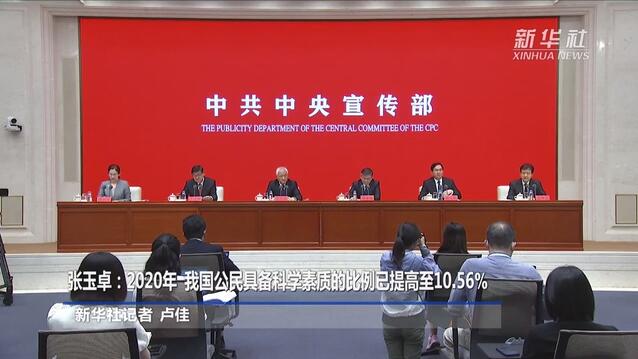 中国这十年·系列主题新闻发布丨张玉卓:2020年 我国公民具备科学素质的比例已提高至10.56%
