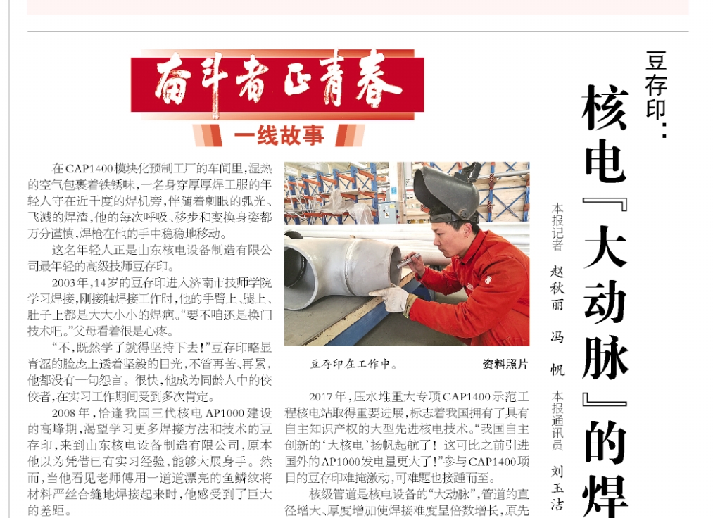 【奋斗者正青春·一线故事】豆存印:核电“大动脉”的焊接师