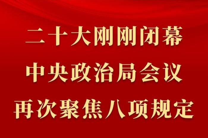 10月25日,党的二十大闭幕刚三天,习近平总书记主持召开中央政治局会议,研究部署学习宣传贯彻党的二十大精神。会议上,审议了《中共中央政治局贯彻落实中央八项规定实施细则》。