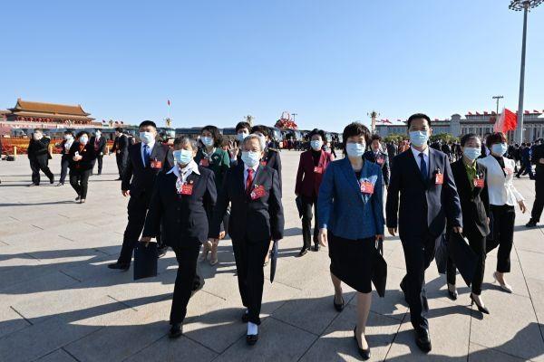 10月16日上午,中国共产党第二十次全国代表大会在北京人民大会堂开幕,习近平代表第十九届中央委员会向大会作报告。