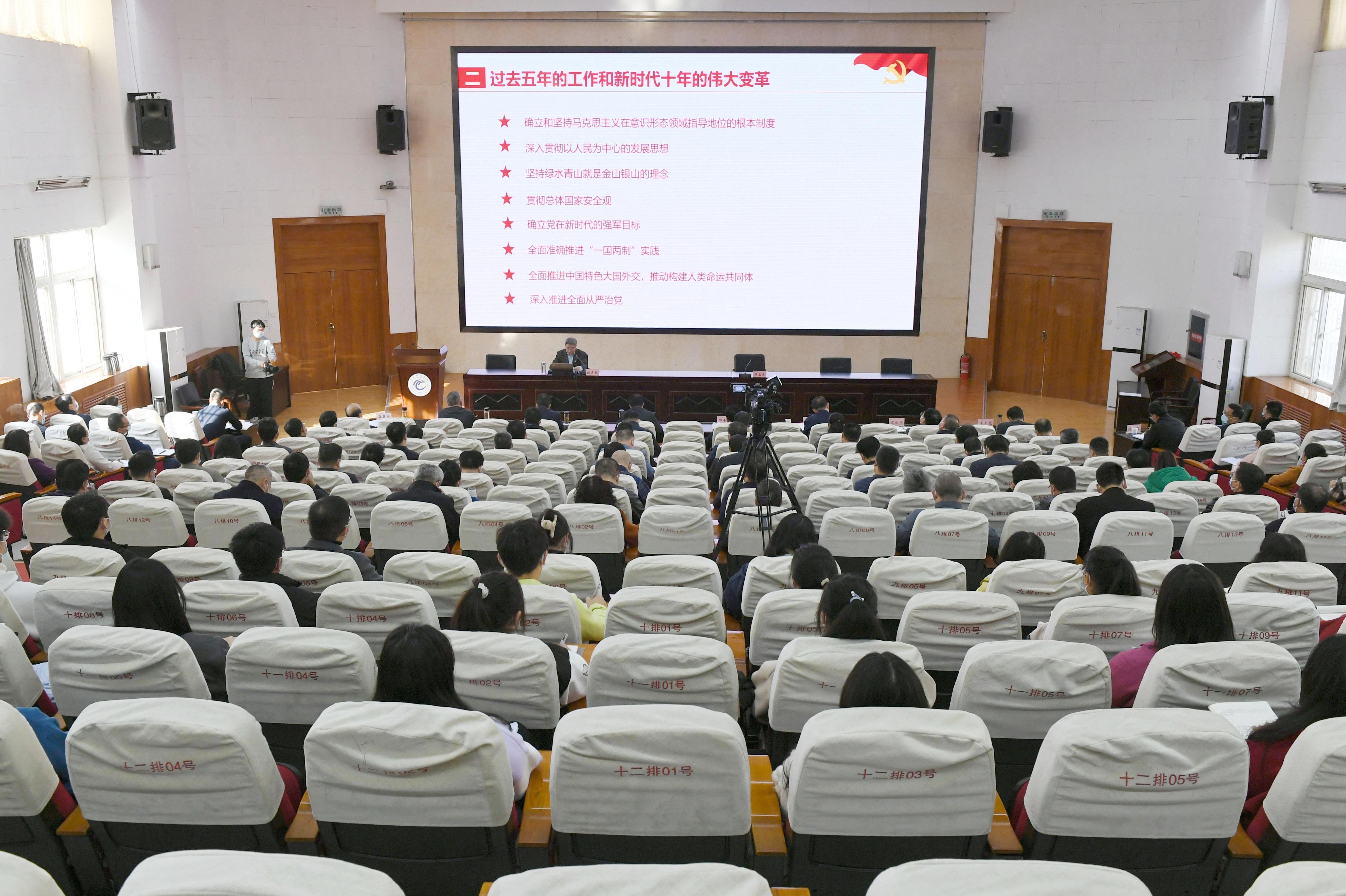 11月18日下午,学习贯彻党的二十大精神市委宣讲团宣讲报告会在市政协机关举行,市政协党组书记、主席王燕作宣讲报告。