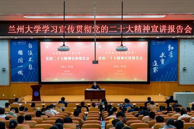 敦煌研究院内,党的二十大代表、敦煌研究院党委书记赵声良为同事们宣讲着党的二十大精神,大家也时不时发表自己的观点与看法。