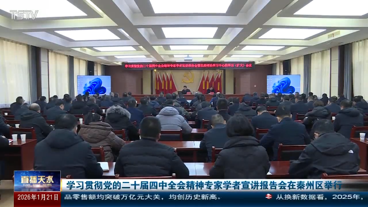 直播天水|学习贯彻党的二十届四中全会精神专家学者宣讲报告会在秦州区举行