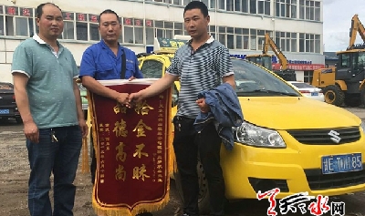 • 7月16日下午,乘客何玉东和朋友罗养峰把一面写着“拾金不昧品德高尚”的锦旗送到了天水市玉祥出租车公司,表达他对公司和甘E.T1185驾驶员罗求各师傅的感谢之情。[查看详情]