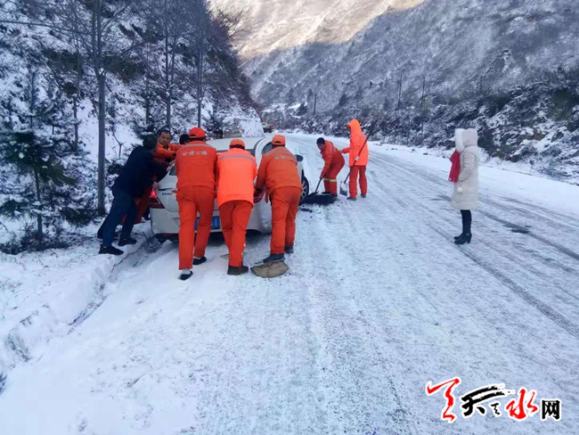 武山公路段雪天救助被困车辆获点赞