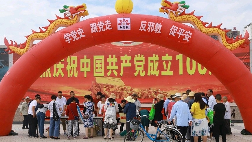 7月22日,清水县政法委组织开展了以“学党史、跟党走、反邪教、促平安”为主题的2021反邪教集中宣传日活动。