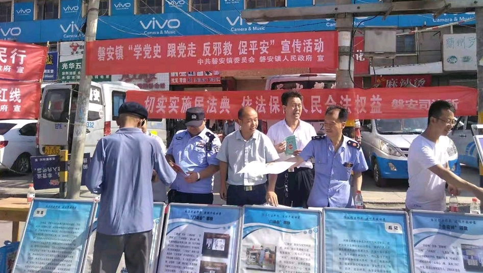 7月22日,甘谷县磐安镇联合派出所、市场监管所围绕“乡村振兴促进法、反邪教、防电信诈骗、农村乱占耕地违建、人居环境整治月”等政策法规在镇区开展集中宣传活动。