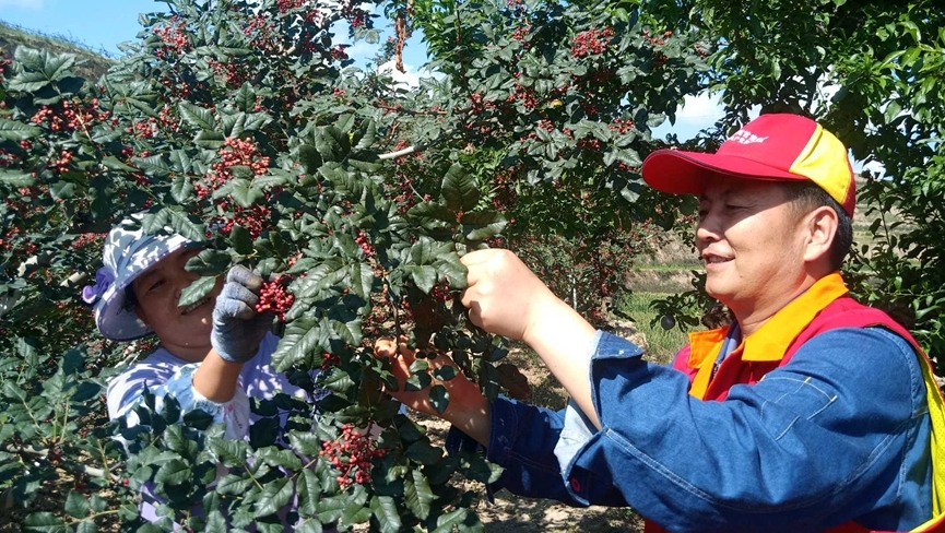清水县山门镇玄头村,漫山遍野花椒正被当地村民和外来务工人员分片采摘。弥漫在空中的椒香,诠释着这座“云端之村”群众的日子如同七月的花椒,红红火火。