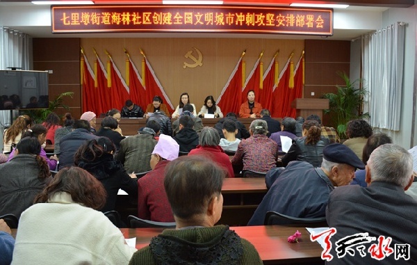 10月26日下午,七里墩街道海林社区召开创建全国文明城市工作冲刺攻坚安排部署会议。