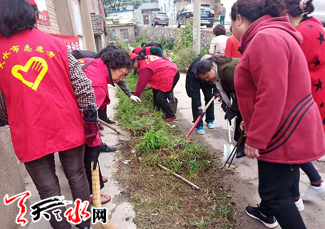 10月23日上午,天水郡街道暖和湾社区组织辖区志愿者、老党员、楼院长、街巷长对辖区背街小巷老旧小区的环境卫生进行集中整治。