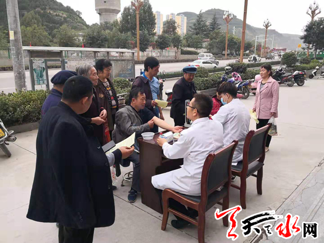 为了让社区居民群众更多地了解如何科学养生、如何在日常生活中对自己的身体健康进行自查,2019年10月29日下午,天水郡街道西十里社区联合社区卫生服务站开展了“健康宣传”进社区主题活动。
