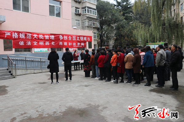 为进一步规范社区居民群众科学养犬、文明养犬,提高居民群众的文明素养,营造整洁有序、安全和谐的社区环境。11月2日上午,王家磨社区在社区楼前开展了“文明养犬 从我做起”宣传活动。