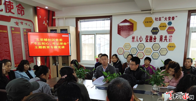 10月24日下午,秦州区七里墩街道五里铺社区邀请街道武装部长裴文炳为社区党员干部讲“不忘初心、牢记使命”主题教育专题党课。