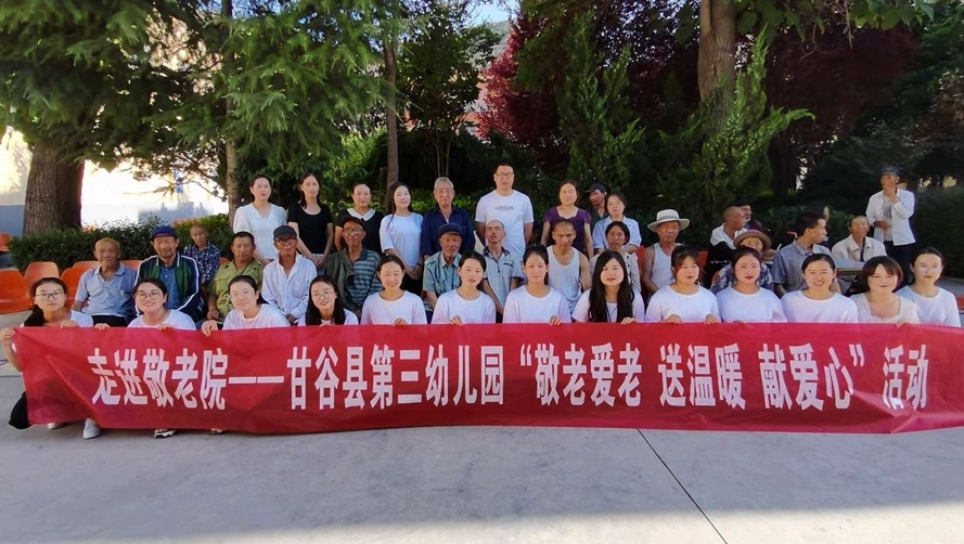 近日,甘谷县第三幼儿园组织20名教师带着牛奶、水果、食品等慰问品来到县中心敬老院开展慰问活动,为老人送去祝福与关怀。