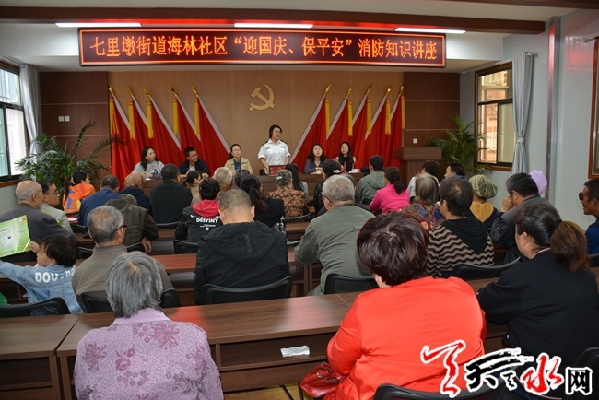 9月27日上午,七里墩街道海林社区开展以“防风险、保安安、迎国庆”为主题的消防安全知识讲座。