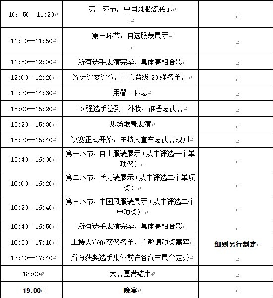 2013“魅力陇东南”首届汽车模特大赛总决赛时间安排表