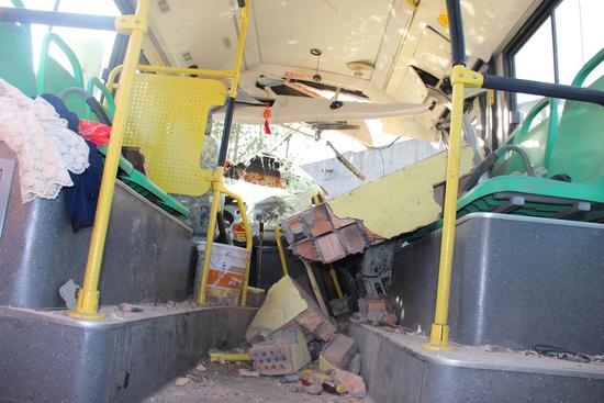 “当时我们过来的时候车上的气都没关,要是爆炸了后果不堪设想。平时这路公交车走到我们村子附近时车速都很高,摆手都不停。村里好多学生进出,非常危险,应该多在这设立减速带,增加公交站牌。”附近村民向抱怨道。图为事故现场。