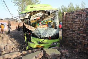 | 河南平顶山市公交车撞塌围墙 40余人受伤 | |