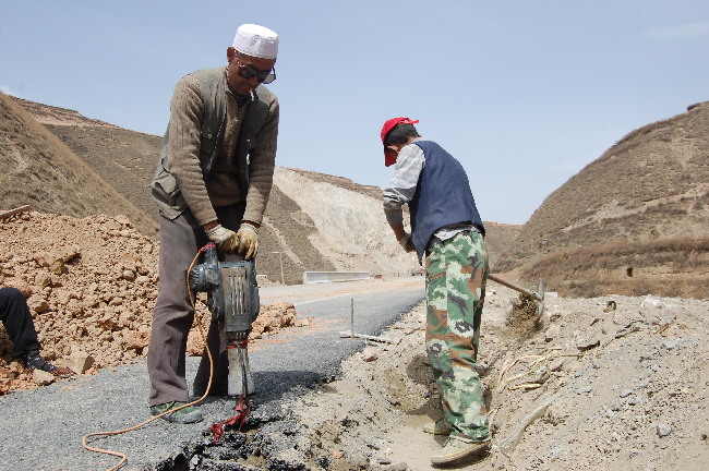 4月1日,施工人员正在天水至庄浪的高速公路(张川段)进行公路路肩、锥护坡扫尾建设工作。庄天公路项目路线全长103.27公里,全线采用二级标准公路建设,设计速度60㏎∕h,路基宽度12米,目前,已完成全部工程的95%,预计6月底竣工通车。记者 吕薇 摄