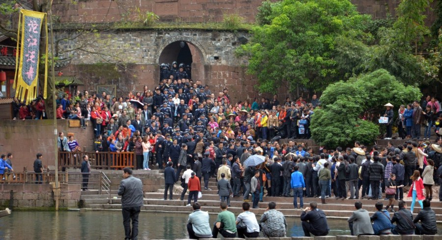 4月11日,凤凰古城实行“一票制”第二天,大批商户和当地居民因不满“一票制”政策关门歇业,同时聚集在古城北门码头附近。截至目前大批警方已经赶到现场。从4月10日起,每一位进入湖南凤凰古城风景名胜区的游客,不论是否参观古城内的景点,都将收取148元门票费,这一政策引起了当地居民和游客的普遍质疑。