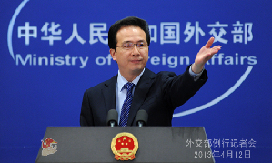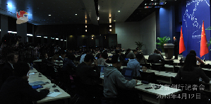 2013年4月12日,外交部发言人洪磊主持例行记者会。