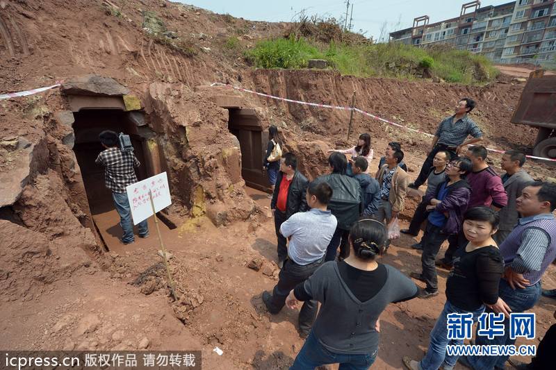 2013年4月13日,重庆北碚区澄江镇一工地挖出两座连体古墓,墓室雕刻精美,附近村民闻讯,纷纷赶来看稀奇,猜测这是哪个年代的墓,墓主是谁?北碚区文管所通过现场勘察,初步断定为宋朝墓葬,距今近千年。