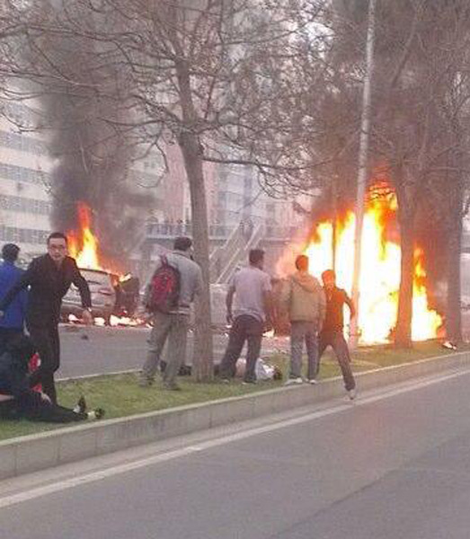 北京4辆轿车相撞引大火