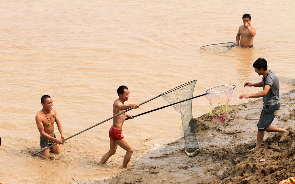 三门峡大坝调水调沙 千人疯狂捞鱼