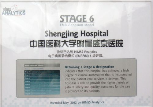资料显示,盛京医院是国内唯一一家分别通过卫生部电子病历系统应用水平6级和美国HIMSS Analytics电子病历采纳模式6级评估的“双6级”医疗机构,这代表着目前信息化的最高水平。