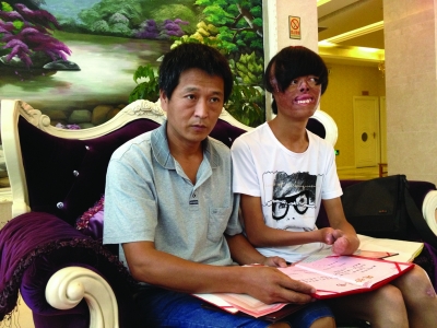 韩明建的父亲韩永林说,孩子被烧成这样,是他和妻子一生的痛,为了弥补自己的过失,他们四处打工挣钱,供儿子读书,儿子读书成绩也一直很好,他拿出儿子从小学到中学的各种奖状和证书,称自己很为儿子骄傲。韩永林还反复向记者强调,儿子的信念就是知识可以改变命运,因此他非常要强,父母不在身边,他一直在努力锻炼独立生活能力,付出了巨大的艰辛,如今生活已经基本可以自理。韩永林说,为了修复孩子的面部,他四处筹钱给孩子整容,各种医疗费用已经花去几十万元。到现在,他们还欠下亲友的近10万元的债务。