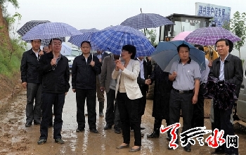 天天天水网讯【记者 童强】7月11日,中共天水市委副书记、市长王锐带领天水市民政、交通、国土、水务等部门负责人赴秦安县境内察看水毁公路及滑坡路段灾情,指导防汛救灾工作,看望慰问救灾一线的工作人员。王锐强调,市县有关部门要加强协同配合,全力以赴尽快抢因暴雨灾害造成的水毁道路,清除滑坡路段隐患,确保人民群众安全畅通出行。