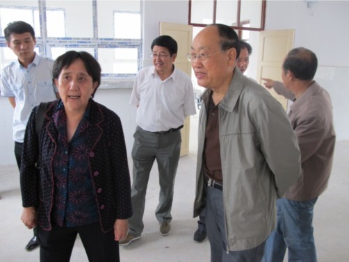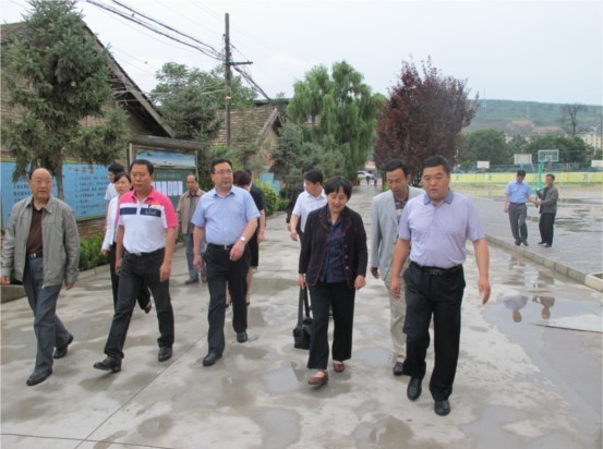 (中国关工委儿研中心春苗营养厨房项目办常务副主任宋立英(右三)在省、市、县相关领导的陪同下检查麦积区马跑泉中学项目前期准备工作)