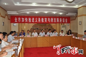 天天天水网讯(记者 徐强)7月18日上午,天水市加快推进义务教育均衡发展座谈会在市迎宾馆召开。副市长蔡建明出席会议,并要求全市义务教育均衡发展要早规划、早投入、早实现。